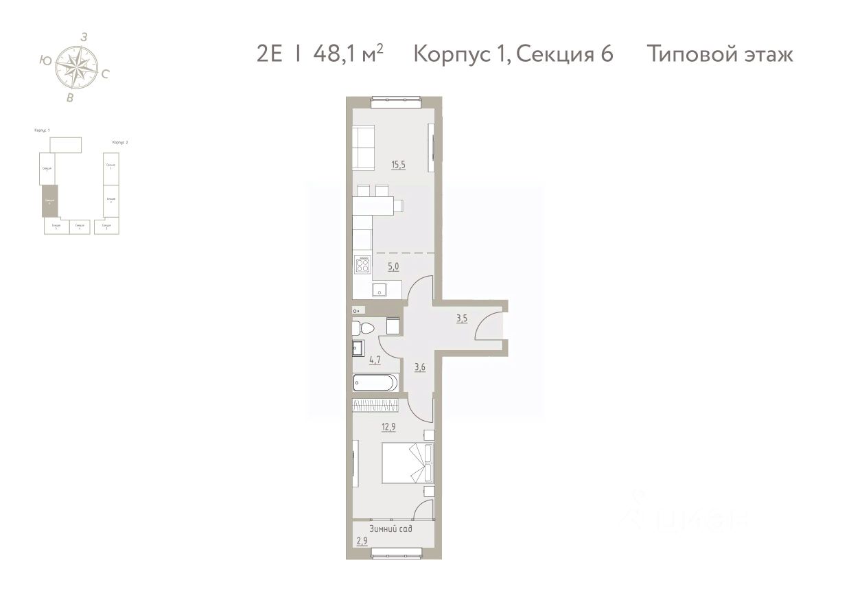 48 м² · Этаж 4 из 4