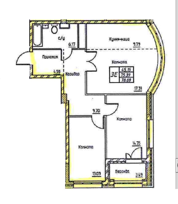 75 м² · Этаж 15 из 25