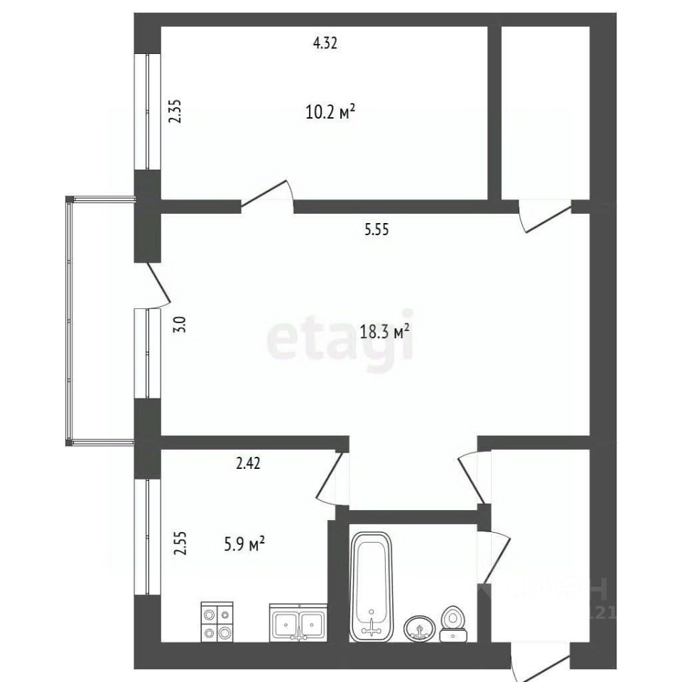 43 м² · Этаж 3 из 3