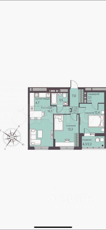 63 м² · Этаж 3 из 10