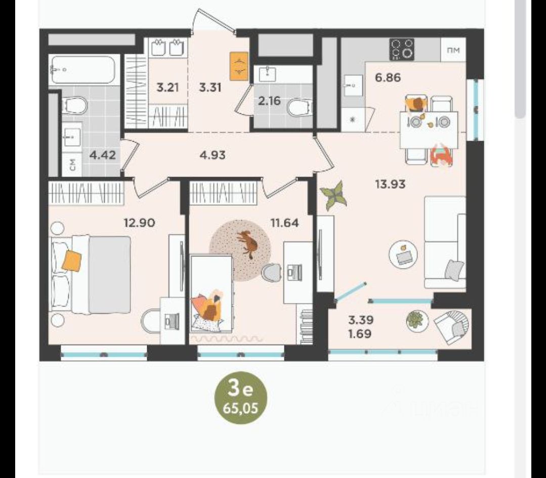 65 м² · Этаж 8 из 10