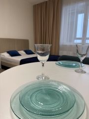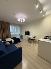 В новом , только что сданом дом , сдается на длительный срок большая квартира форматом 2евроКухня гостиная и спальня. Квартира укомплектована мебелью и бытовой техникой. Шикарные виды из окна, удобное расположение жилого комплекса. В шаговой доступности: автобусные остановки , продуктовые и хозяйственные магазины, пункты выдачи, стоматология, школа, детский сад, тренажерный зал.Предоплата за 1 месяцЗалог 35 000 ₽