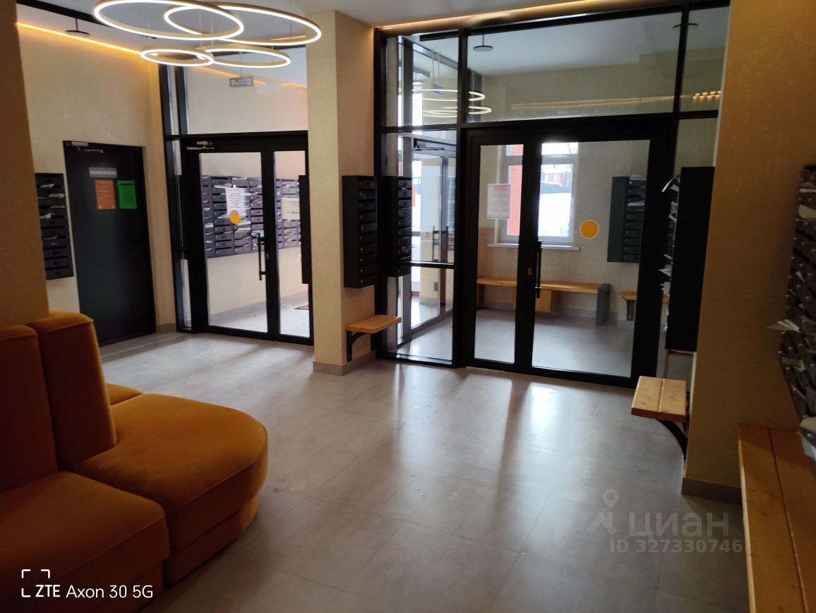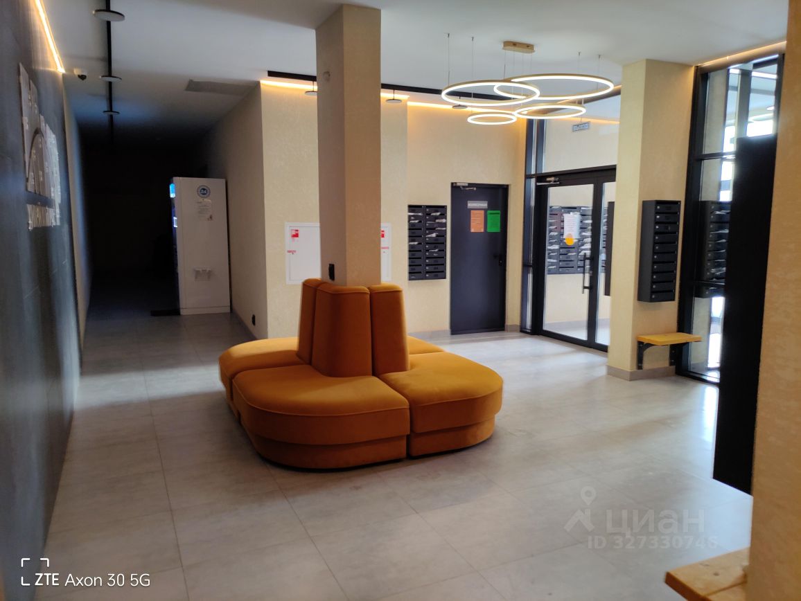 Уютная студия в новом современном доме. В подъезде аппараты с чистой водой, кафе, диваны.