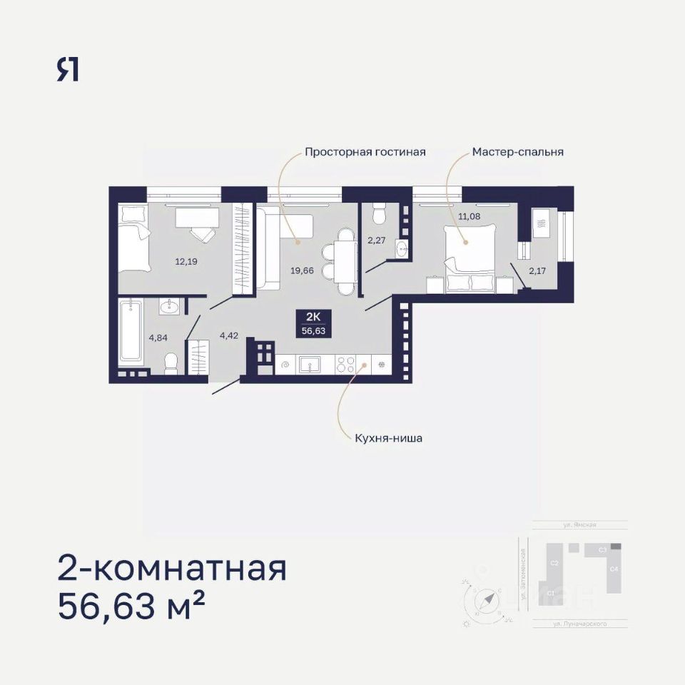 продам 2-к, Ямская, 29а13 130 000 ₽