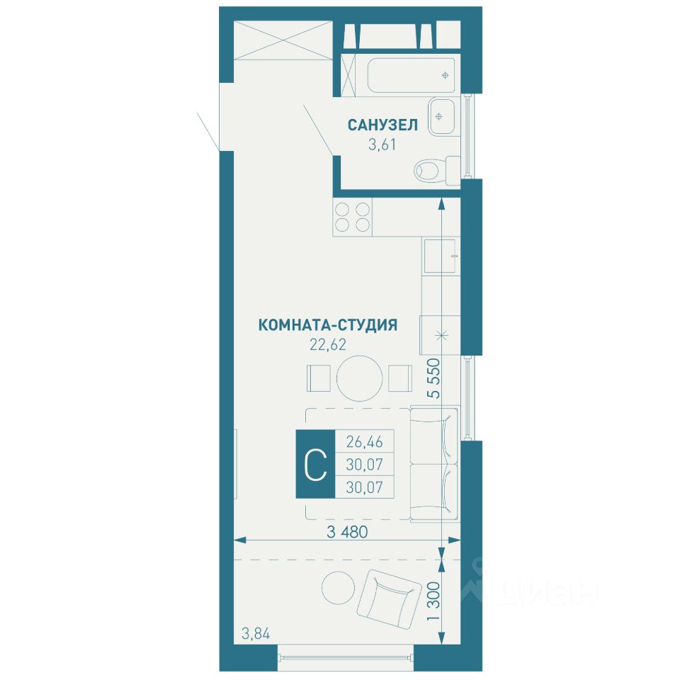 Общая площадь30,07 м2