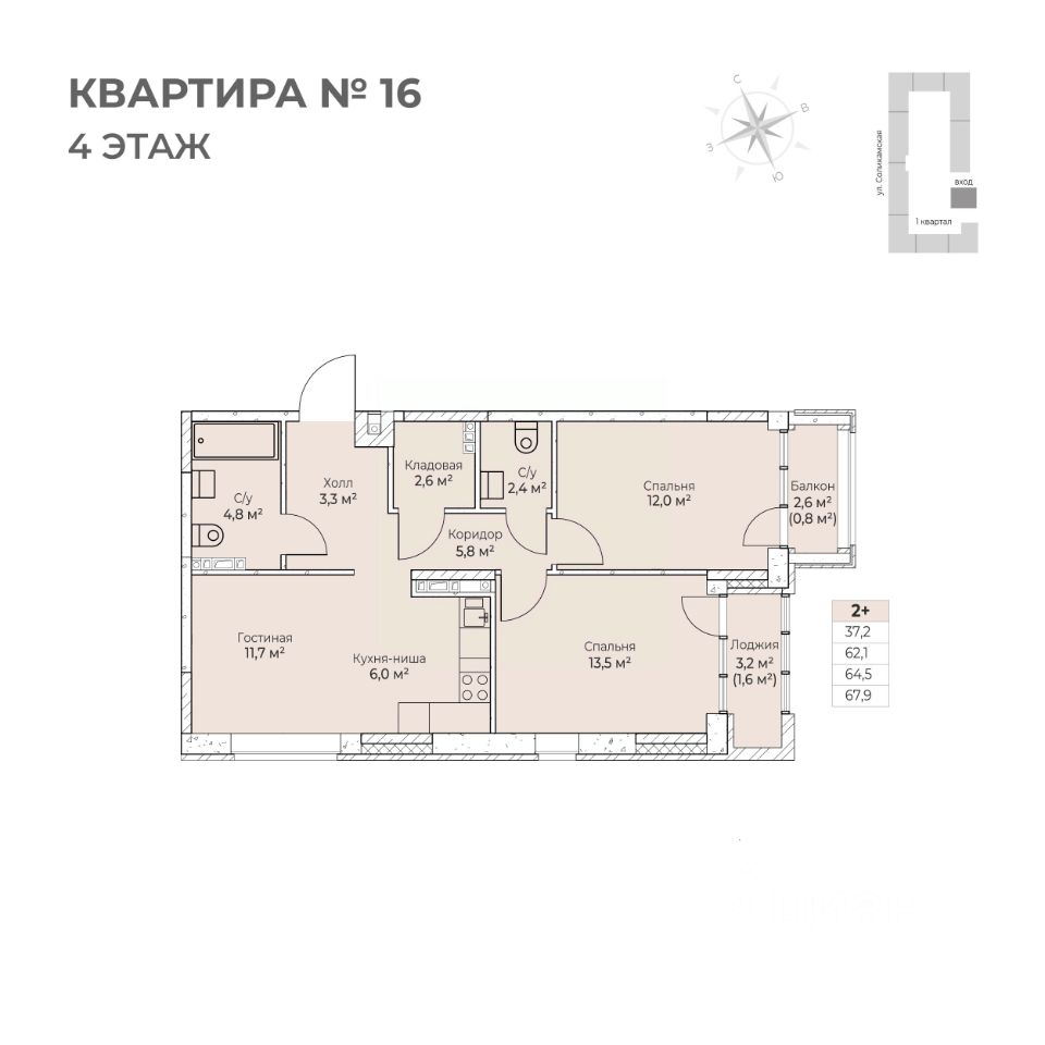 Продаётся 2-комнатная квартира в строящемся доме (I этап), срок сдачи: IV-кв. 2026, общей площадью 67.9 кв.м., на 4 этаже. Новый жилой комплекс ''Ветлан'' от застройщика ''Пермит'' расположен в г. Пермь на ул. Ивана Франко.