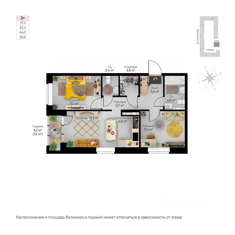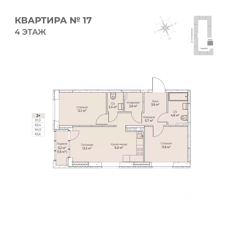 Продаётся 2-комнатная квартира в строящемся доме (I этап), срок сдачи: IV-кв. 2026, общей площадью 65.6 кв.м., на 4 этаже. Новый жилой комплекс ''Ветлан'' от застройщика ''Пермит'' расположен в г. Пермь на ул. Ивана Франко.