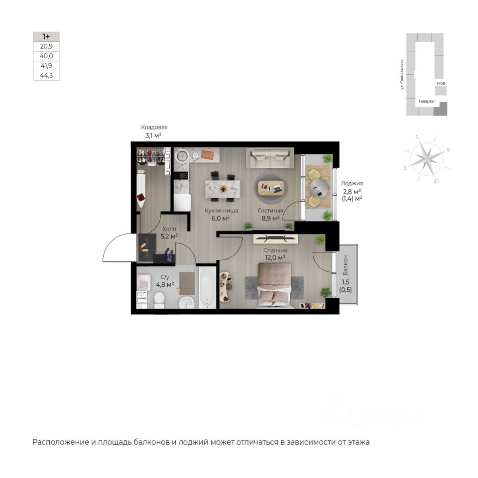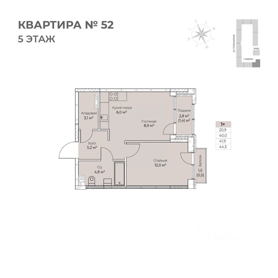 Продаётся 1-комнатная квартира в строящемся доме (I этап), срок сдачи: IV-кв. 2026, общей площадью 44.3 кв.м., на 5 этаже. Новый жилой комплекс ''Ветлан'' от застройщика ''Пермит'' расположен в г. Пермь на ул. Ивана Франко.