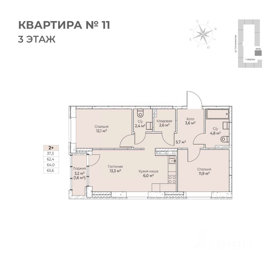 Продаётся 2-комнатная квартира в строящемся доме (I этап), срок сдачи: IV-кв. 2026, общей площадью 65.6 кв.м., на 3 этаже. Новый жилой комплекс ''Ветлан'' от застройщика ''Пермит'' расположен в г. Пермь на ул. Ивана Франко.