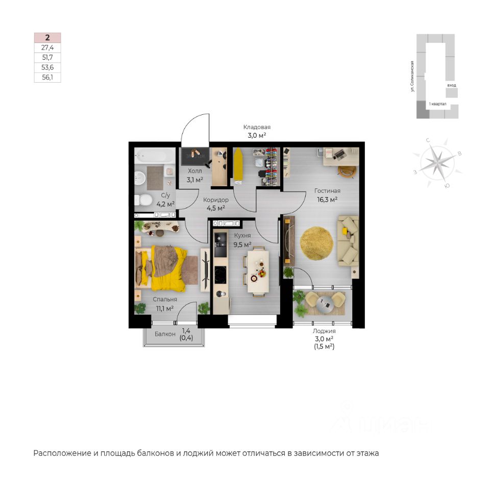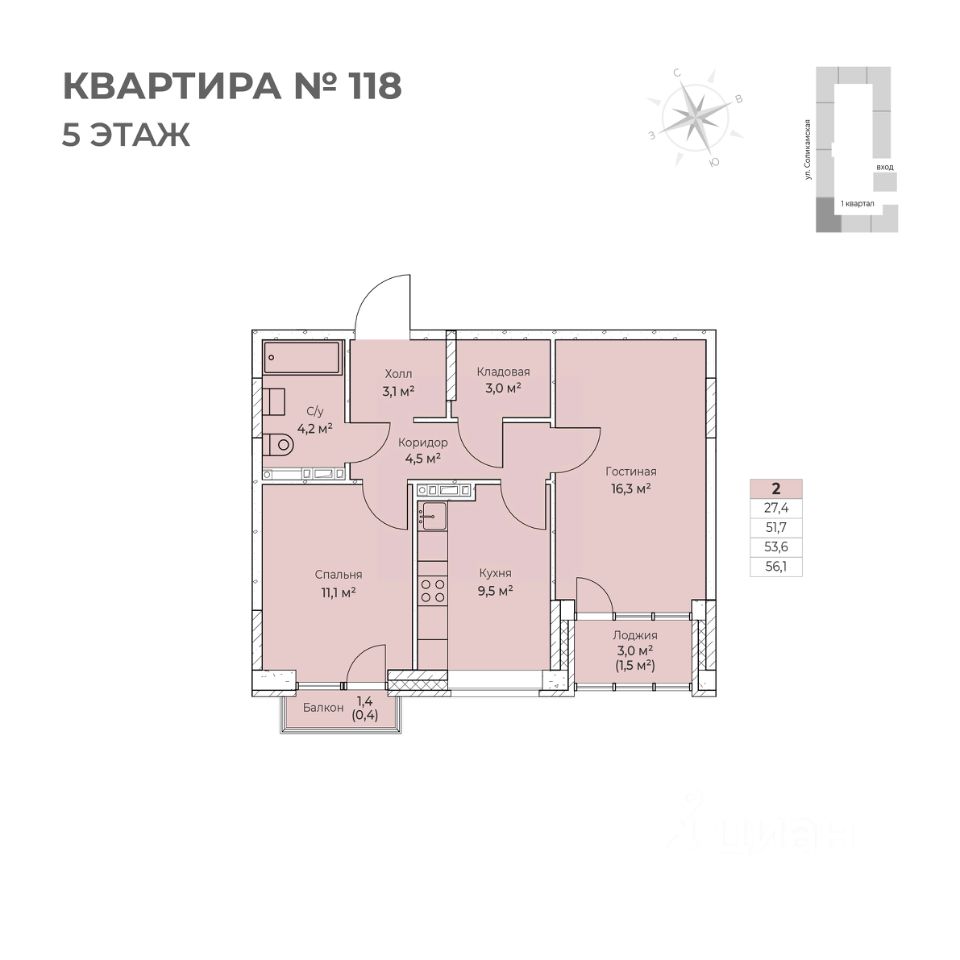 Продаётся 2-комнатная квартира в строящемся доме (I этап), срок сдачи: IV-кв. 2026, общей площадью 56.1 кв.м., на 5 этаже. Новый жилой комплекс ''Ветлан'' от застройщика ''Пермит'' расположен в г. Пермь на ул. Ивана Франко.