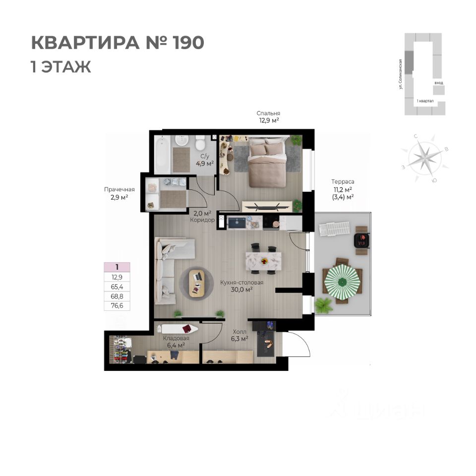 Продаётся 2-комнатная квартира в строящемся доме (I этап), срок сдачи: IV-кв. 2026, общей площадью 76.6 кв.м., на 1 этаже. Новый жилой комплекс ''Ветлан'' от застройщика ''Пермит'' расположен в г. Пермь на ул. Ивана Франко.