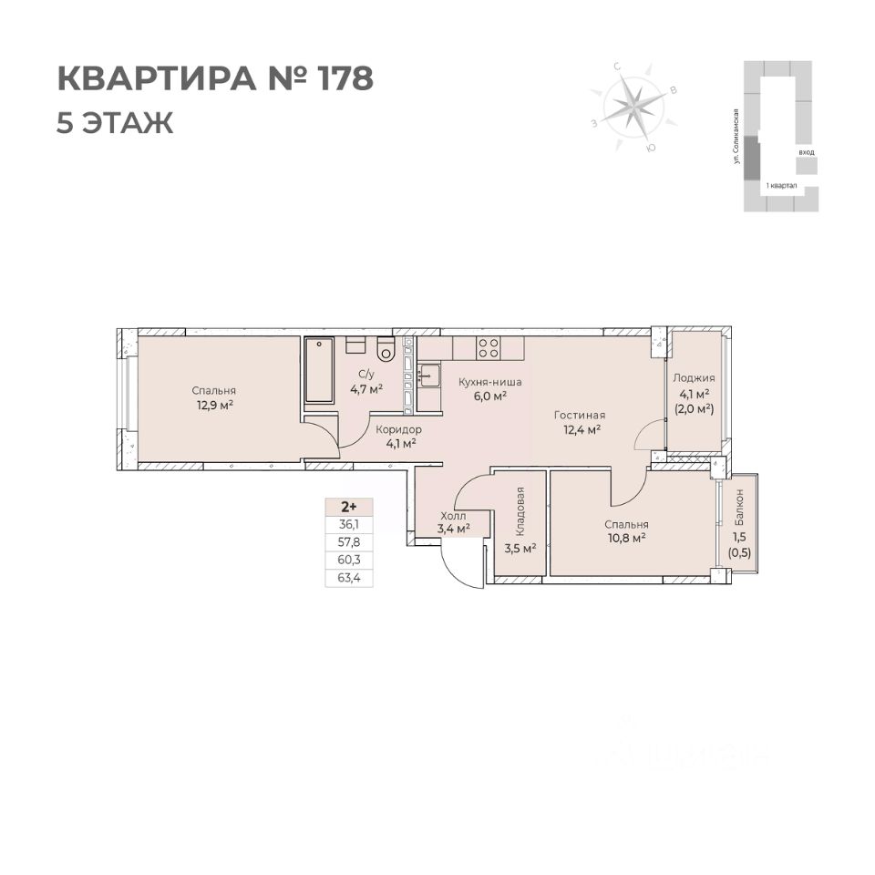 Продаётся 3-комнатная квартира в строящемся доме (I этап), срок сдачи: IV-кв. 2026, общей площадью 63.4 кв.м., на 5 этаже. Новый жилой комплекс ''Ветлан'' от застройщика ''Пермит'' расположен в г. Пермь на ул. Ивана Франко.