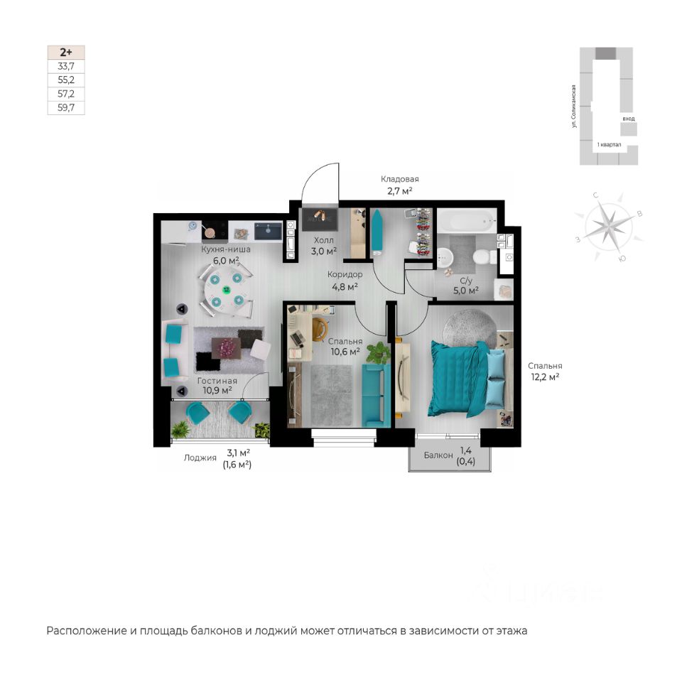 Продаётся 3-комнатная квартира в строящемся доме (I этап), срок сдачи: IV-кв. 2026, общей площадью 58.3 кв.м., на 2 этаже. Новый жилой комплекс ''Ветлан'' от застройщика ''Пермит'' расположен в г. Пермь на ул. Ивана Франко.