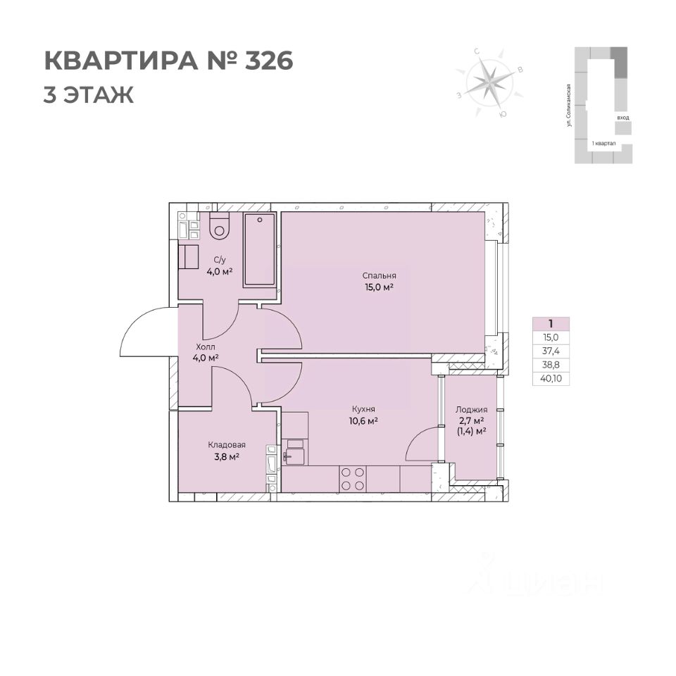 Продаётся 1-комнатная квартира в строящемся доме (I этап), срок сдачи: IV-кв. 2026, общей площадью 40.1 кв.м., на 3 этаже. Новый жилой комплекс ''Ветлан'' от застройщика ''Пермит'' расположен в г. Пермь на ул. Ивана Франко.