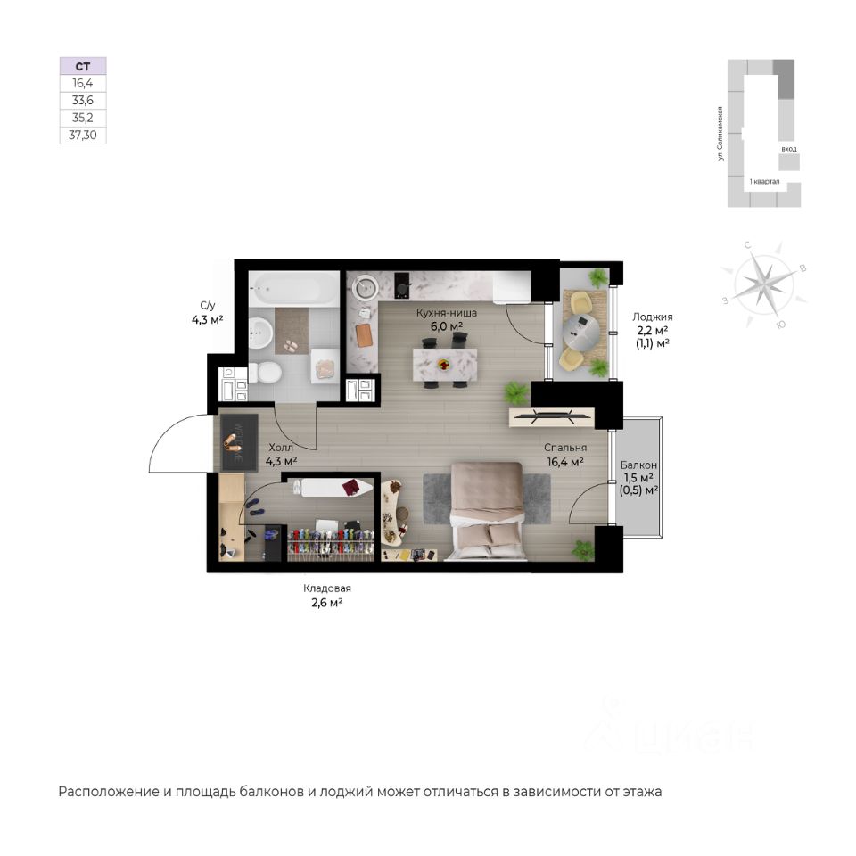 Продаётся студия в строящемся доме (I этап), срок сдачи: IV-кв. 2026, общей площадью 37.3 кв.м., на 5 этаже. Новый жилой комплекс ''Ветлан'' от застройщика ''Пермит'' расположен в г. Пермь на ул. Ивана Франко.
