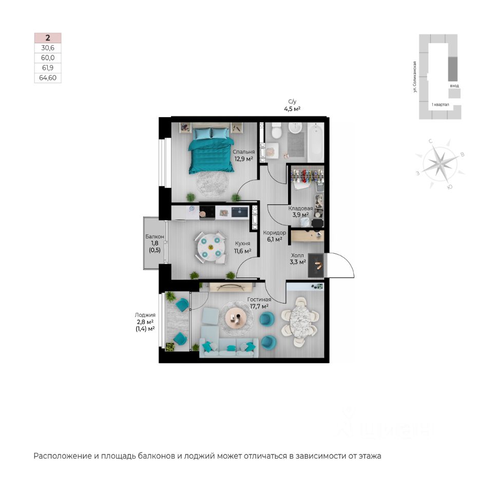 Продаётся 2-комнатная квартира в строящемся доме (I этап), срок сдачи: IV-кв. 2026, общей площадью 62.8 кв.м., на 2 этаже. Новый жилой комплекс ''Ветлан'' от застройщика ''Пермит'' расположен в г. Пермь на ул. Ивана Франко.