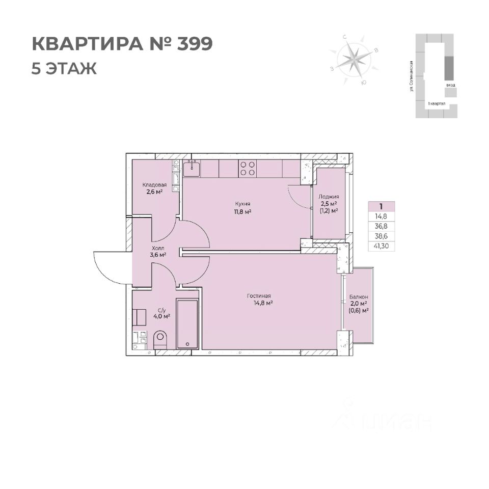Продаётся 1-комнатная квартира в строящемся доме (I этап), срок сдачи: IV-кв. 2026, общей площадью 41.3 кв.м., на 5 этаже. Новый жилой комплекс ''Ветлан'' от застройщика ''Пермит'' расположен в г. Пермь на ул. Ивана Франко.