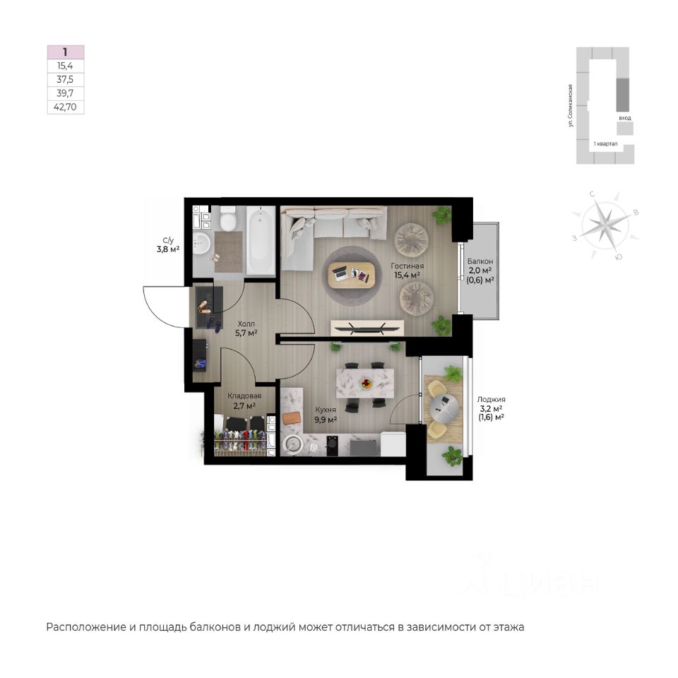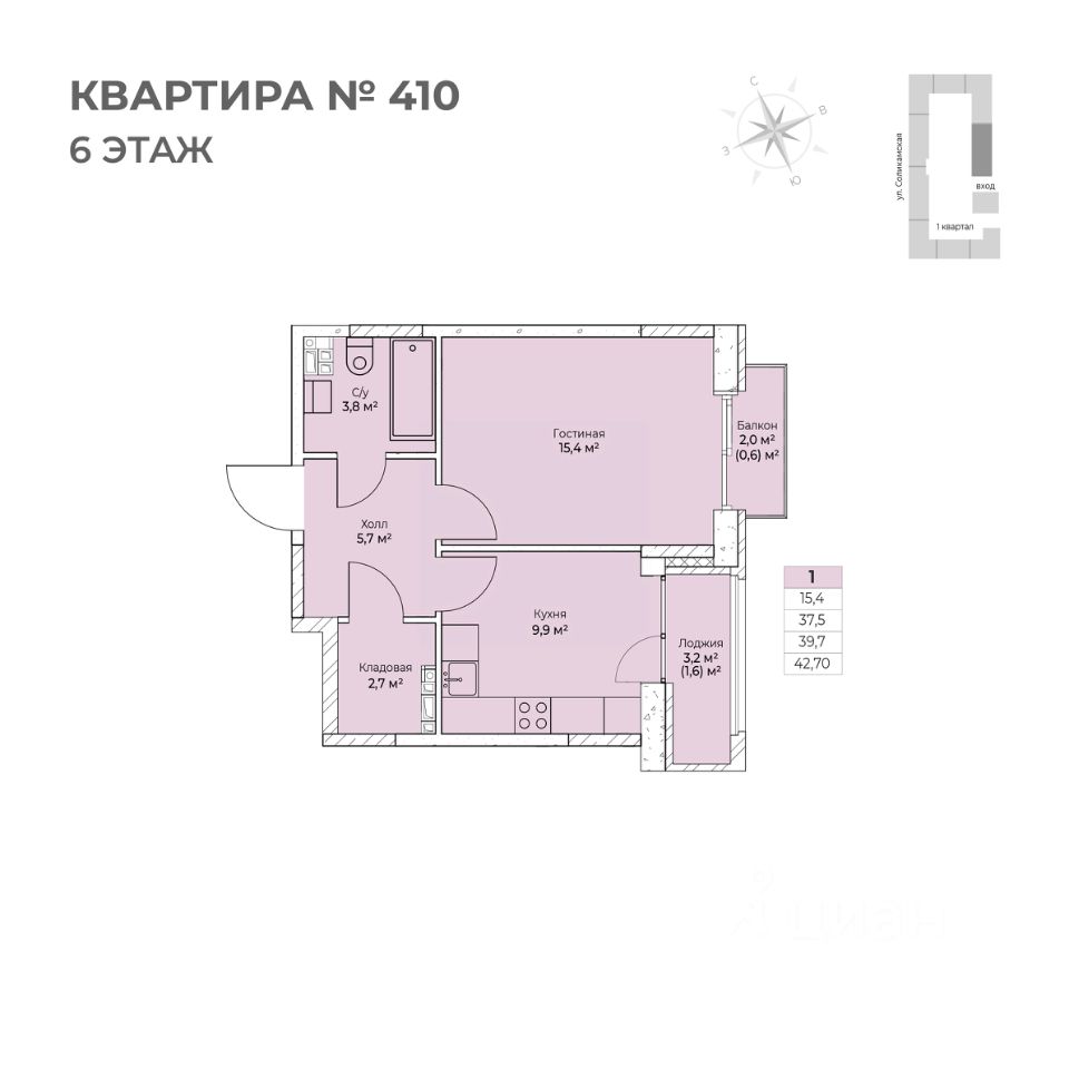 Продаётся 1-комнатная квартира в строящемся доме (I этап), срок сдачи: IV-кв. 2026, общей площадью 42.7 кв.м., на 6 этаже. Новый жилой комплекс ''Ветлан'' от застройщика ''Пермит'' расположен в г. Пермь на ул. Ивана Франко.