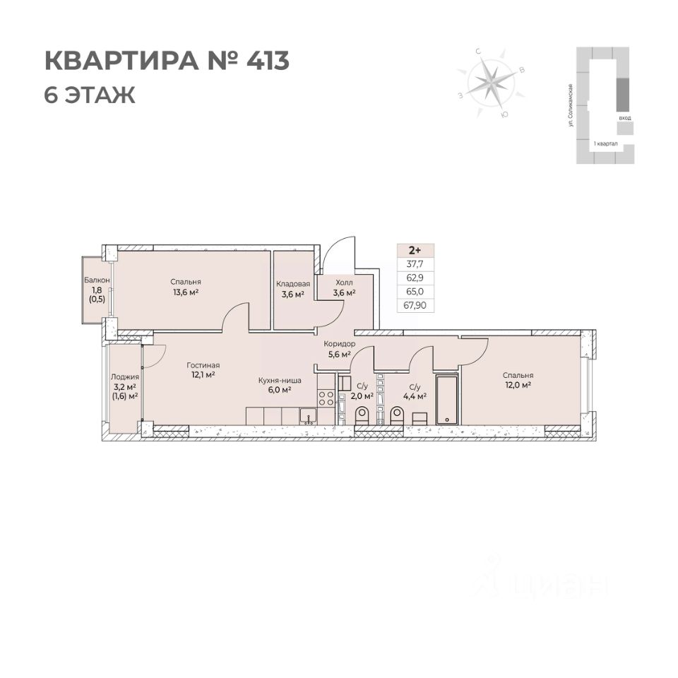 Продаётся 3-комнатная квартира в строящемся доме (I этап), срок сдачи: IV-кв. 2026, общей площадью 67.9 кв.м., на 6 этаже. Новый жилой комплекс ''Ветлан'' от застройщика ''Пермит'' расположен в г. Пермь на ул. Ивана Франко.