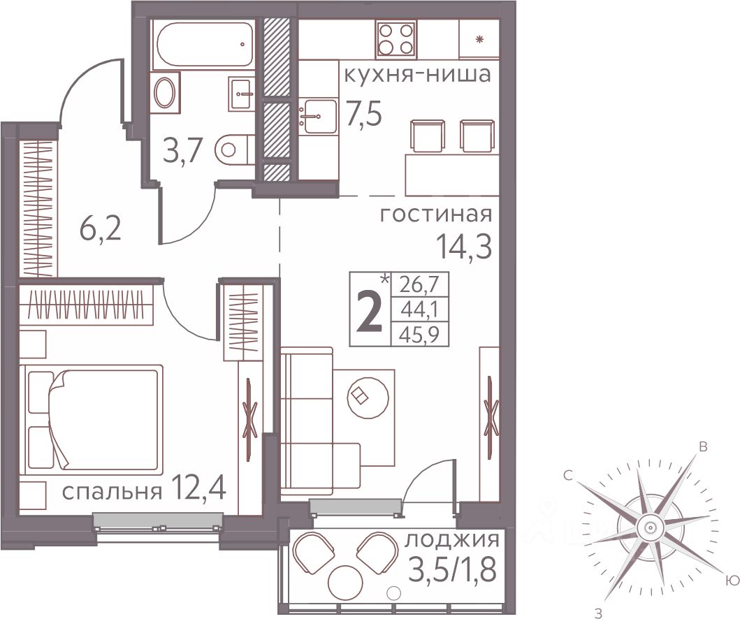 Продаётся студия в строящемся доме (Серебристая, 3), срок сдачи: III-кв. 2026, общей площадью 45.9 кв.м., на 6 этаже. Теплые кварталы ''Погода'' — это новый грандиозный проект от создателя Спортивного микрорайона ''Ива'', федерального застройщика ''Девелопмент-Юг'' .