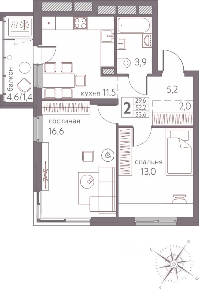 Продаётся 2-комнатная квартира в строящемся доме (Серебристая, 3), срок сдачи: III-кв. 2026, общей площадью 53.6 кв.м., на 11 этаже. Теплые кварталы ''Погода'' — это новый грандиозный проект от создателя Спортивного микрорайона ''Ива'', федерального застройщика ''Девелопмент-Юг'' .