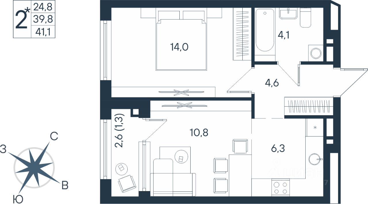 Продаётся студия в строящемся доме (Дом 17), срок сдачи: IV-кв. 2026, общей площадью 41.1 кв.м., на 3 этаже. Новый жилой комплекс ''ЮГ на Беляева'' от Специализированного застройщика ''Беляева 17'' расположен по адресу: г. Пермь, улица Космонавта Беляева.
