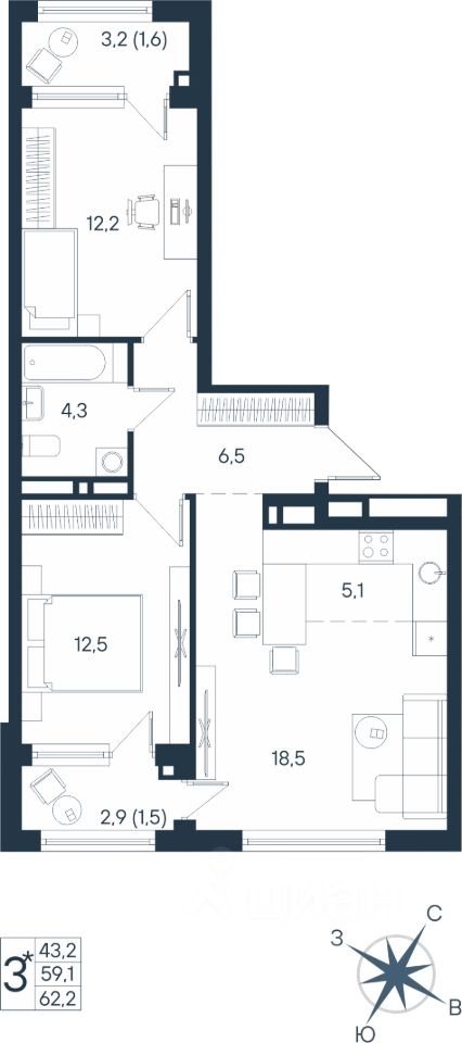 Продаётся студия в строящемся доме (Дом 17), срок сдачи: IV-кв. 2026, общей площадью 62.2 кв.м., на 9 этаже. Новый жилой комплекс ''ЮГ на Беляева'' от Специализированного застройщика ''Беляева 17'' расположен по адресу: г. Пермь, улица Космонавта Беляева.