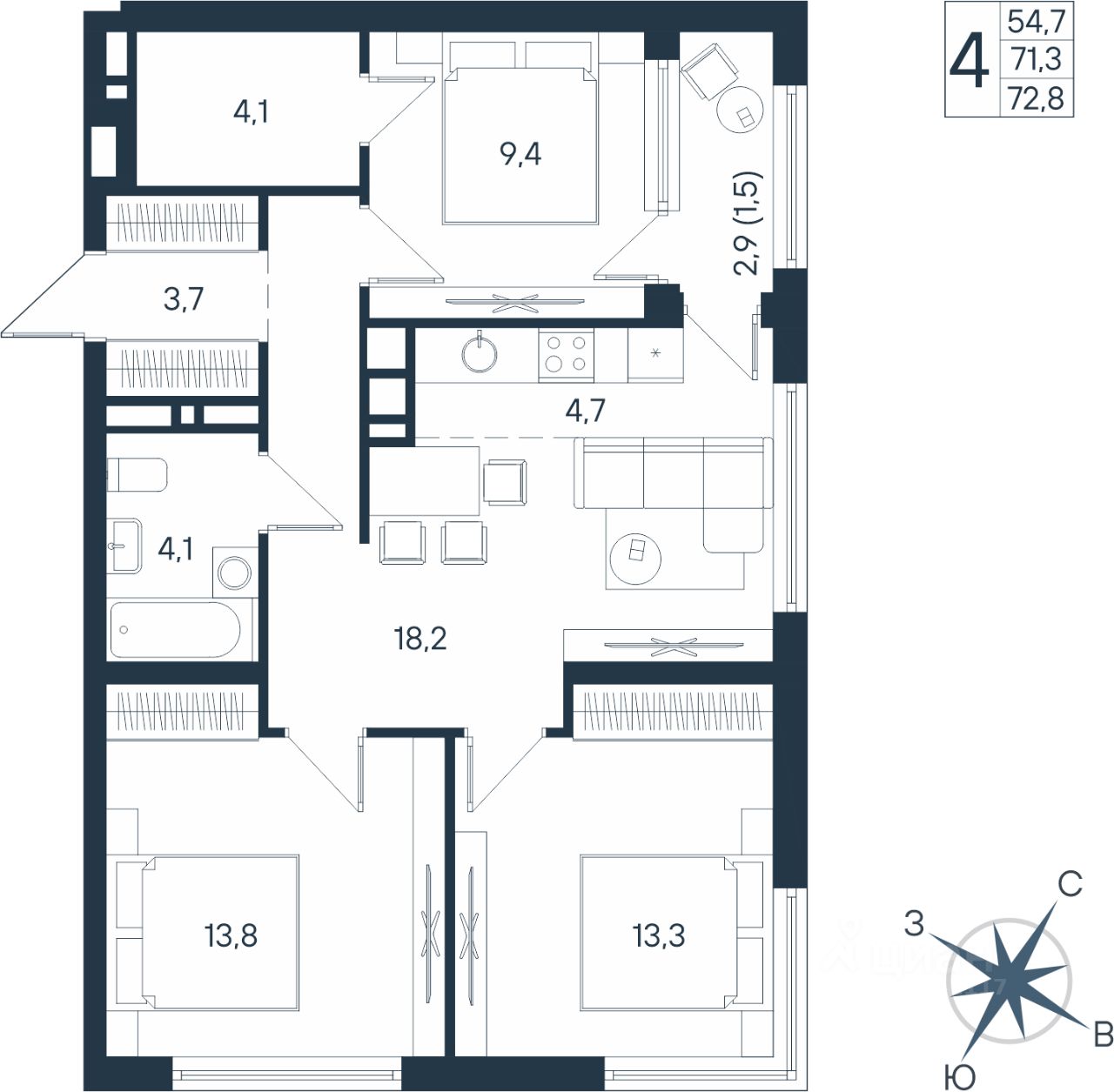Продаётся 4-комнатная квартира в строящемся доме (Дом 17), срок сдачи: IV-кв. 2026, общей площадью 72.8 кв.м., на 10 этаже. Новый жилой комплекс ''ЮГ на Беляева'' от Специализированного застройщика ''Беляева 17'' расположен по адресу: г. Пермь, улица Космонавта Беляева.