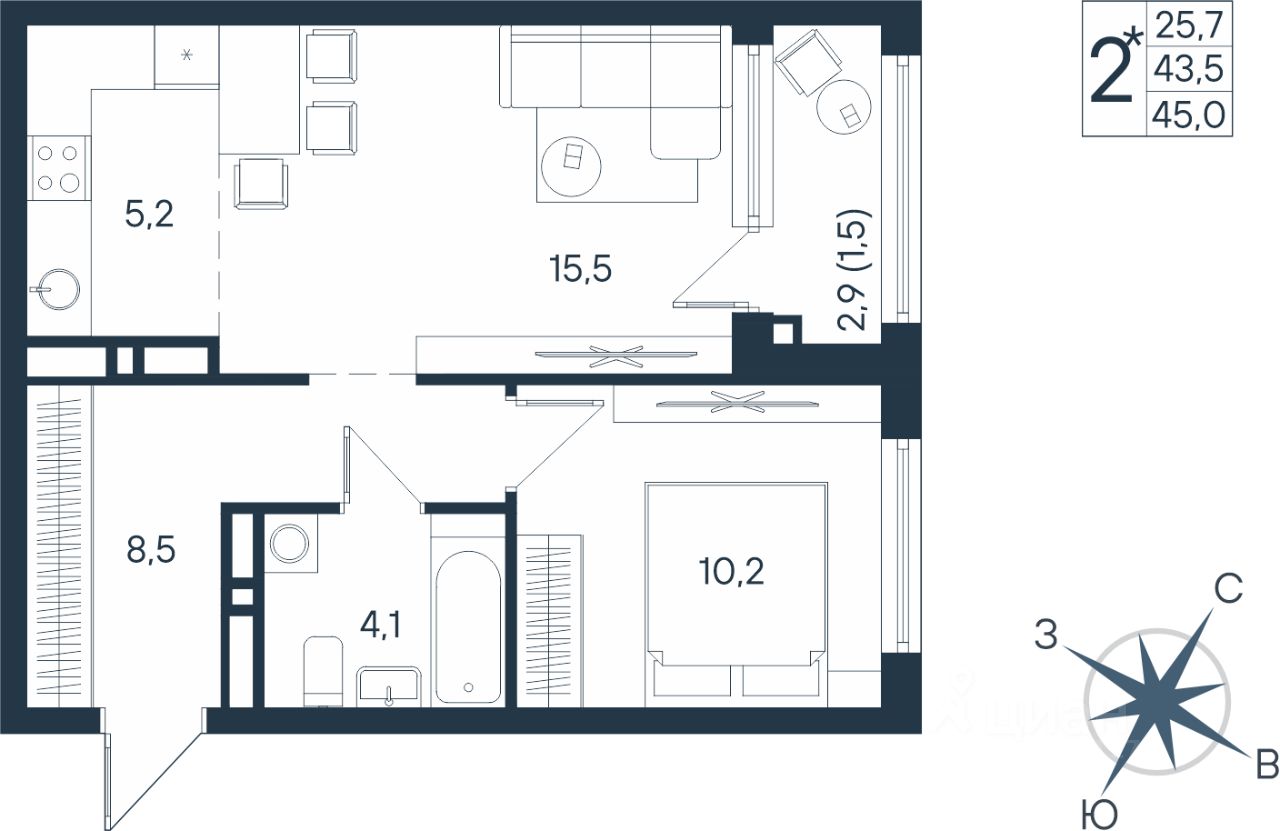 Продаётся студия в строящемся доме (Дом 17), срок сдачи: IV-кв. 2026, общей площадью 45 кв.м., на 8 этаже. Новый жилой комплекс ''ЮГ на Беляева'' от Специализированного застройщика ''Беляева 17'' расположен по адресу: г. Пермь, улица Космонавта Беляева.