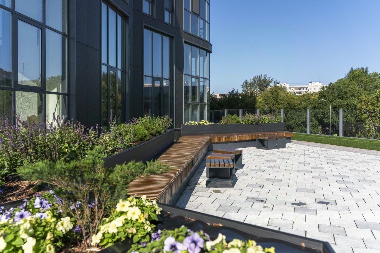 Благоустройство прилегающей территории включает в себя организацию детских игровых и спортивных площадок, гостевой автостоянки, а также озеленение. Предусмотрен подземный паркинг. Первые этажи займут коммерческие помещения. В шаговой доступности находятся школы, детские сады, медицинские учреждения, магазины, торговый центр и остановки общественного транспорта.