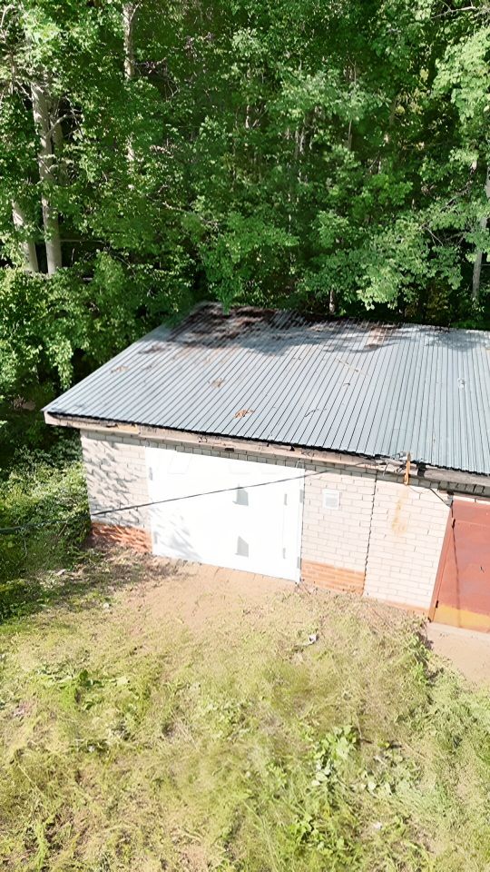На крыше новый оцинкованный профнастил не требующий ухода, в отличие от рубероида ( замена каждые 5-7 лет).