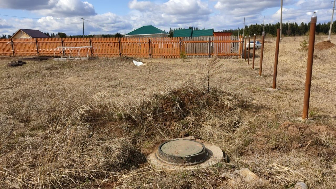 На участке колодец на два кольца. Столбы по периметру, для забора.