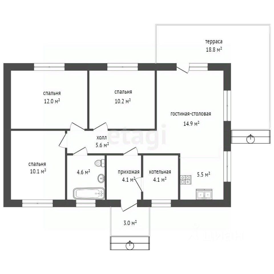 Общая площадь75 м2