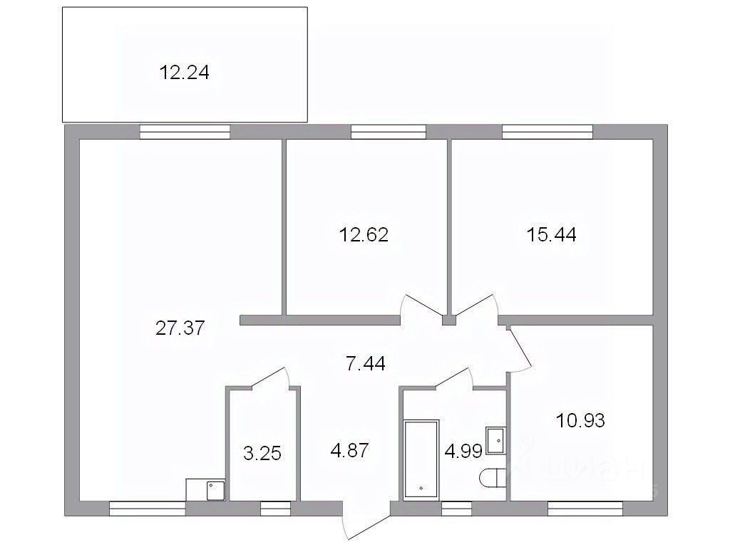 2.Стены: - Центральная несущая стена выполнена из газоблока толщиной 200 мм, а перегородки - из гипсовой пазогребневой полнотелой плиты толщиной 80 мм. - Внутренние стены газоблока отделаны ГКЛ толщиной 12 мм, швы обработаны, зашпатлеваны. В санузле используется влагостойкий ГКЛ. 3.
