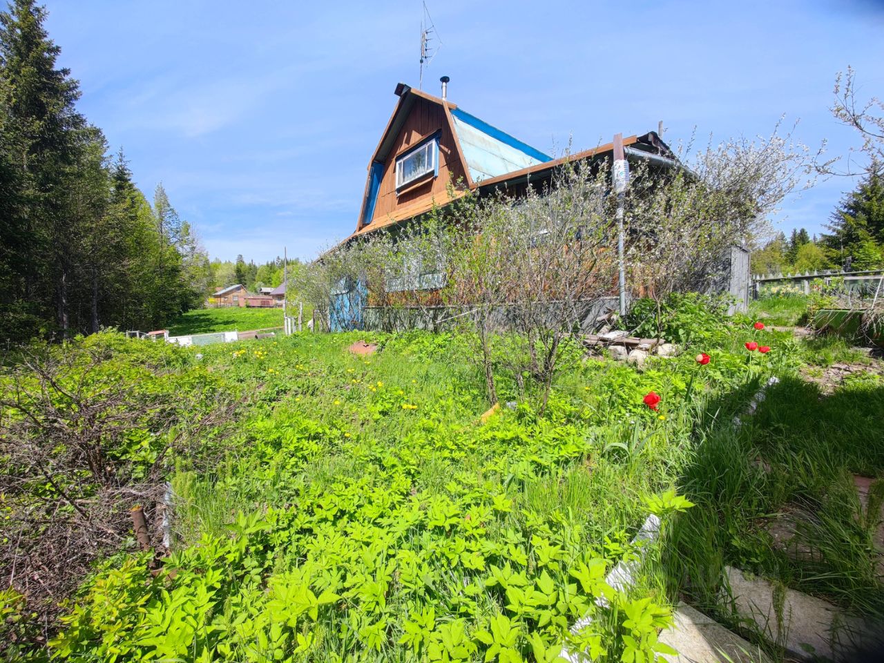 Дача в Кунгурском районе, направление на Осу, в СНТ Дружба. Дорога при съезде с трассы бетонка. Участок наклонный, дом из бруса с мансардой и верандой, комната на первом этаже и комната на мансардном этаже, кухня, баня и сарай под одной крышей, гараж пристроен к дому, теплица из поликарбоната на 2 отделения, туалет, колодец. Участок используется. Есть ёмкость для полива на 2 куба воды, соседи хорошие.