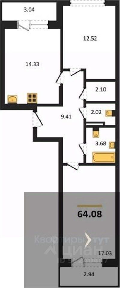 Общая площадь64,08 м2