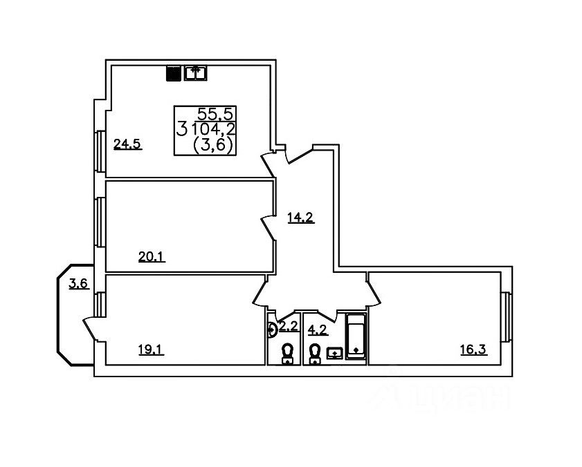 Общая площадь104,2 м2