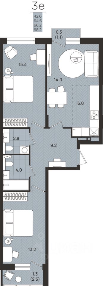 Общая площадь66,2 м2