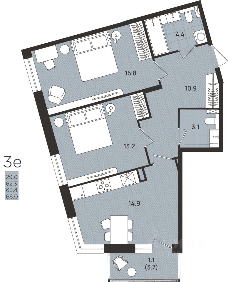 Общая площадь63,4 м2