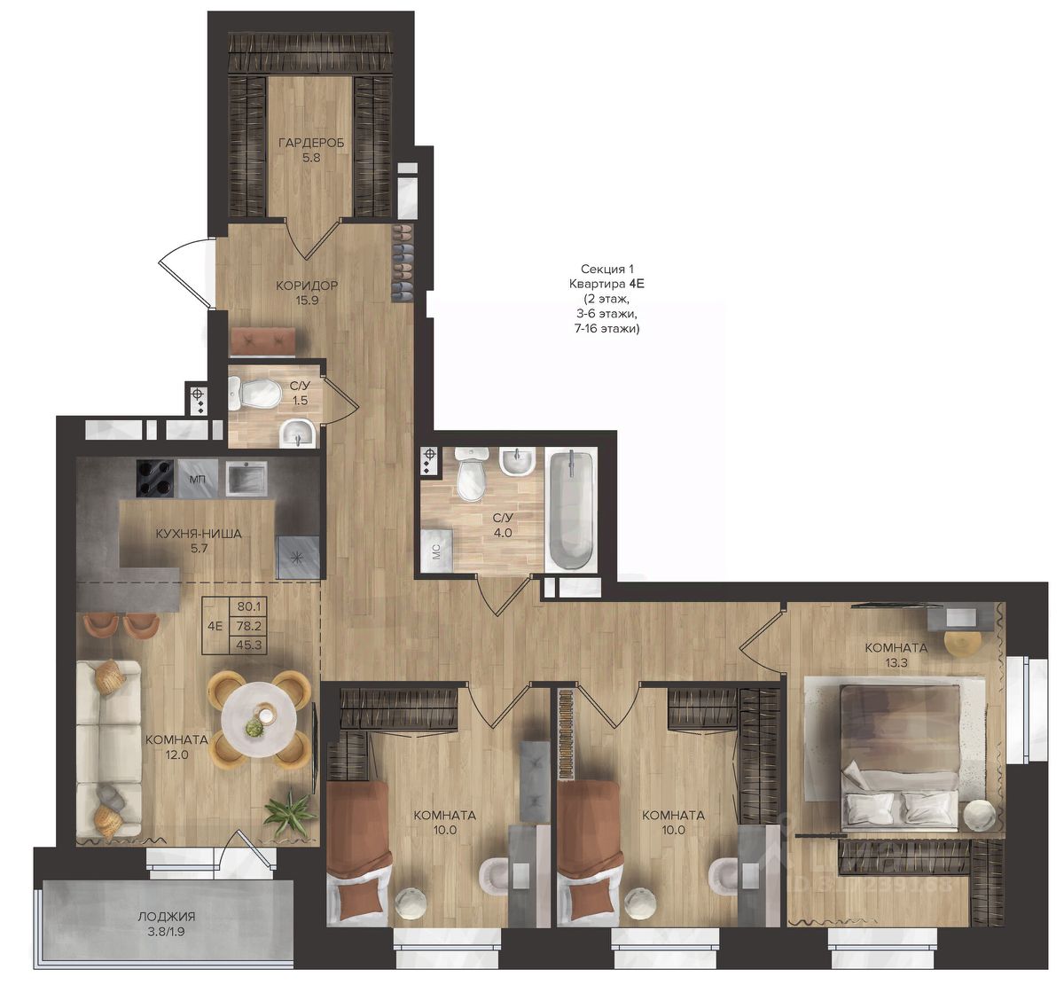 Общая площадь80,1 м2
