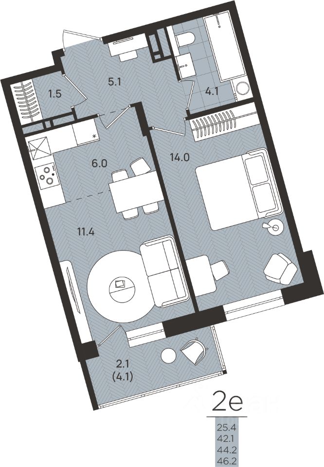 Общая площадь44,2 м2