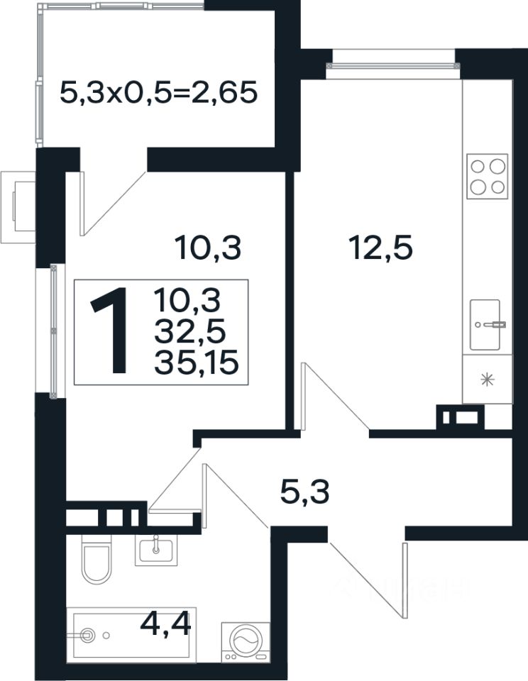 Общая площадь35,15 м2