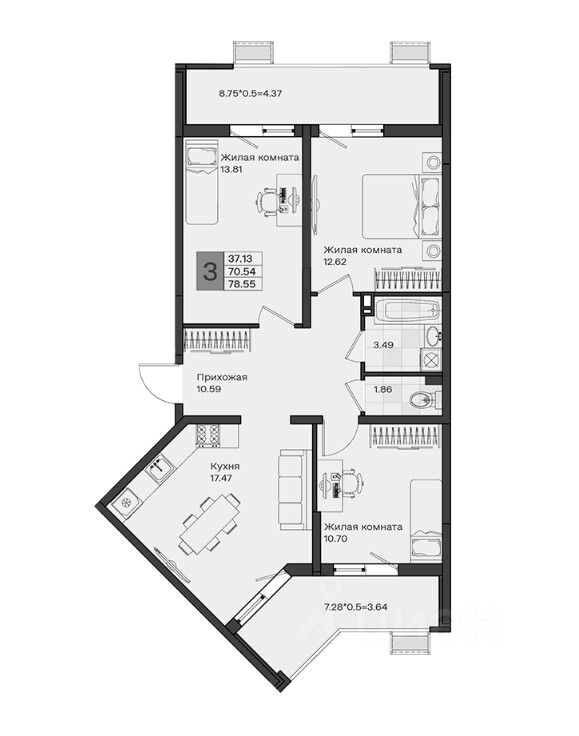 Общая площадь78,55 м2
