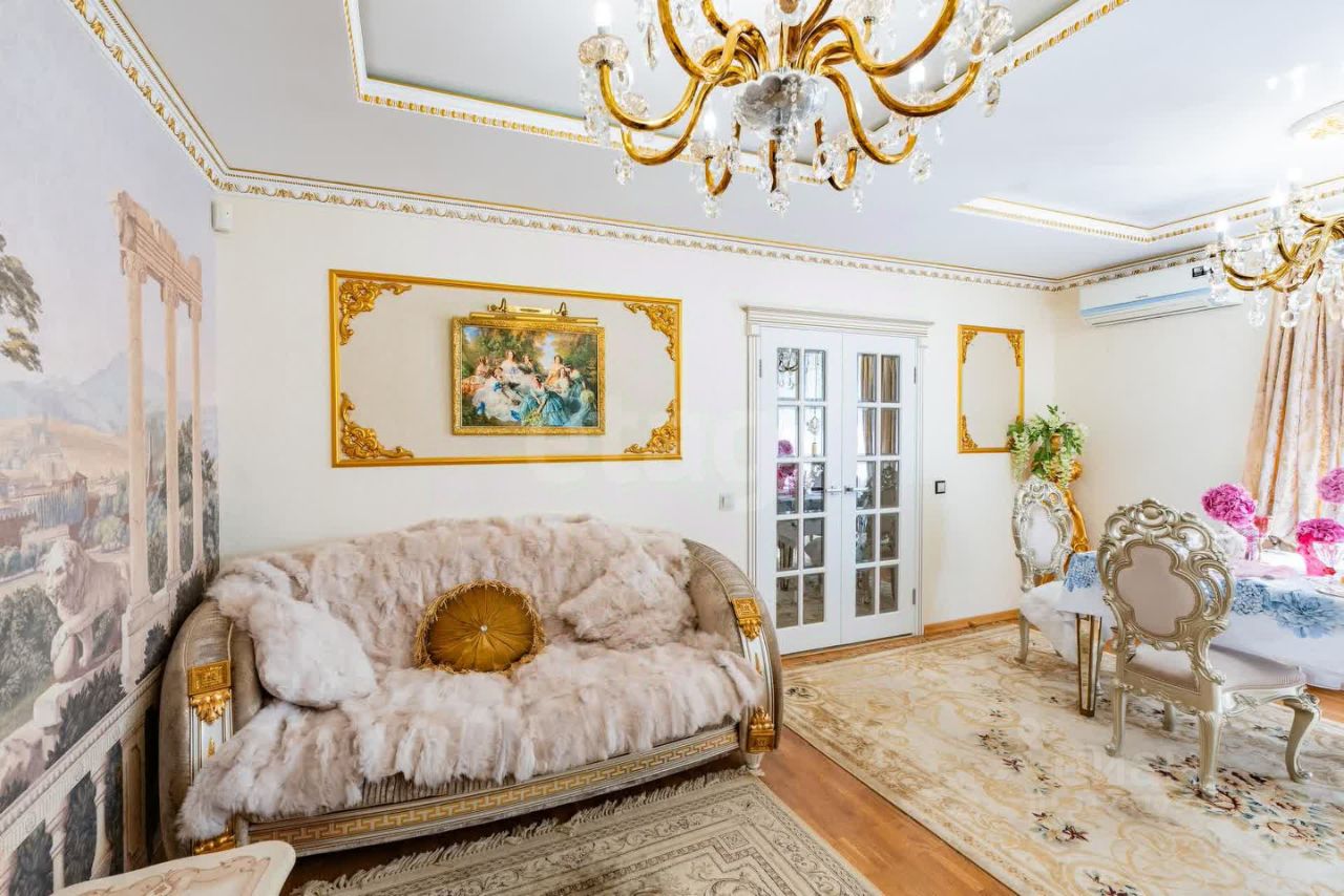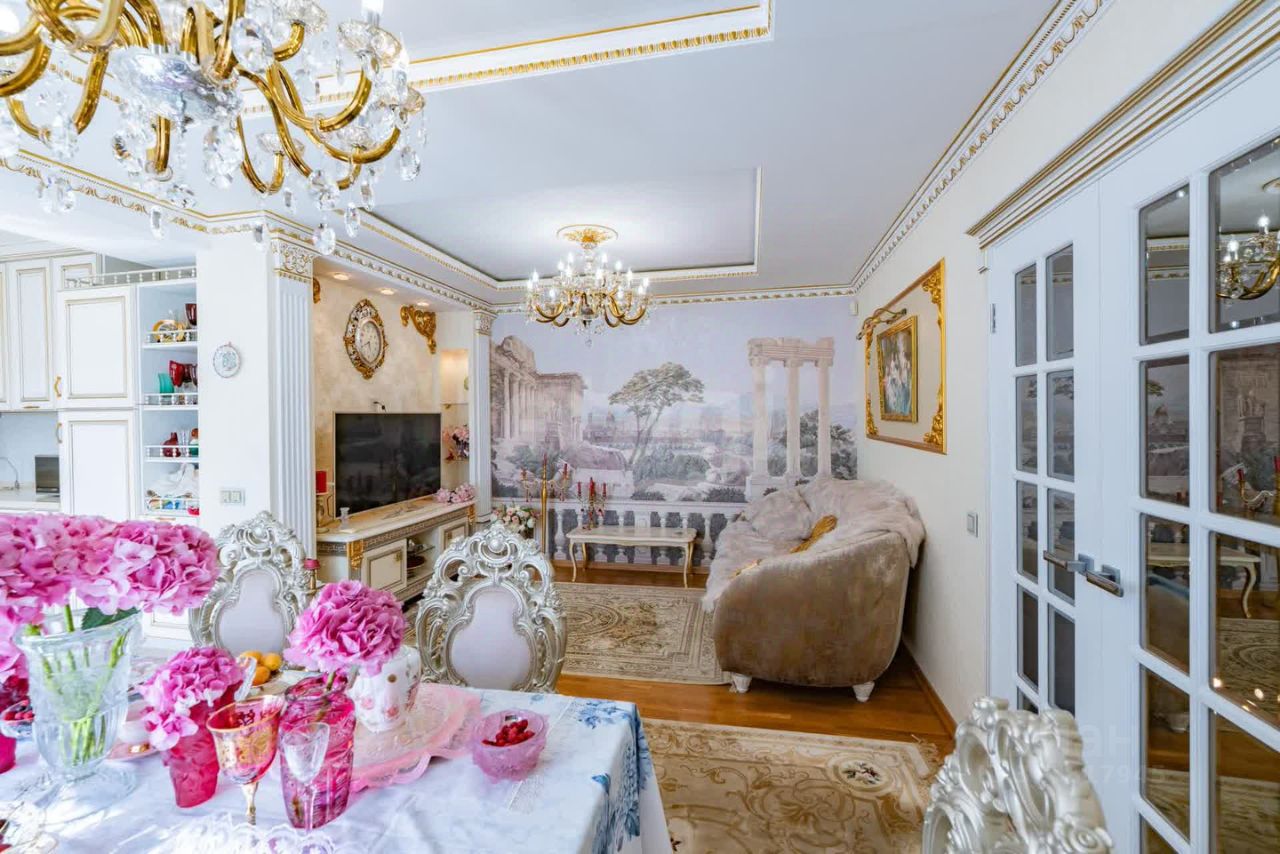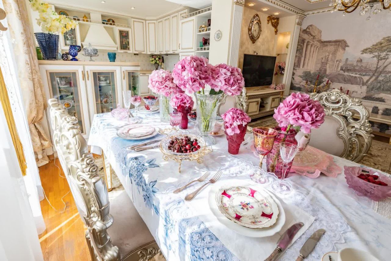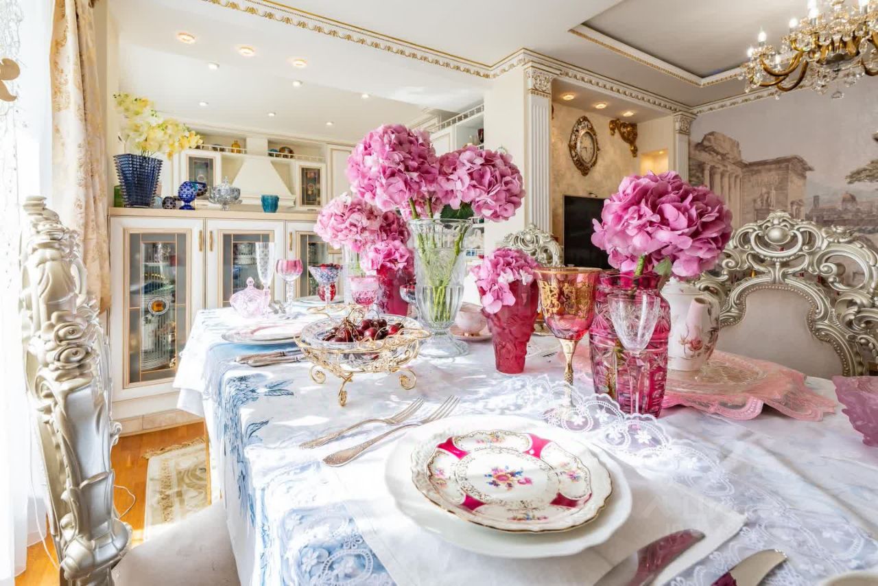 Кухня-гостиная в стиле modern baroque: Центр композиции — люстра из богемского хрусталя, чьи грани играют светом в такт времени.