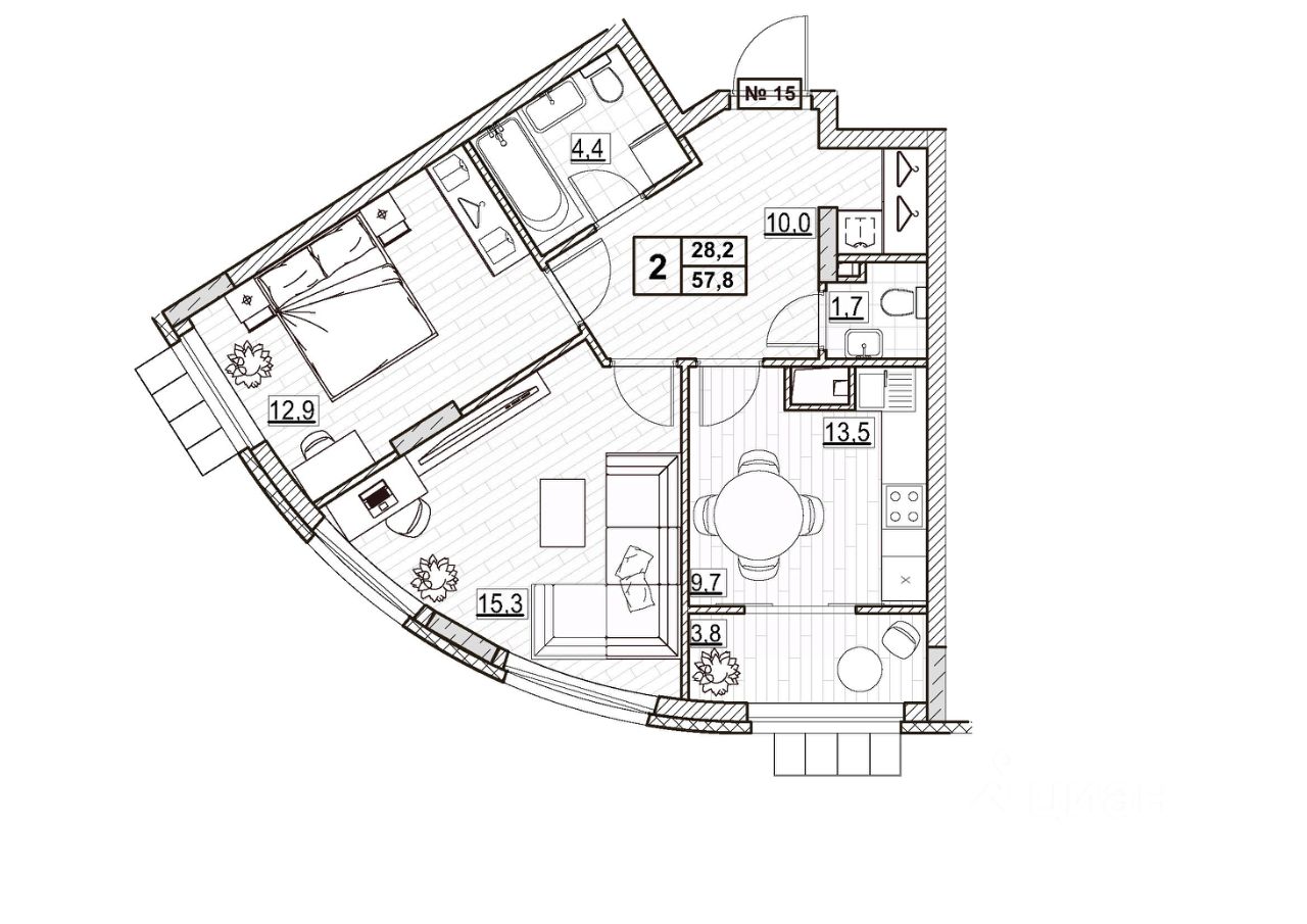 Общая площадь57,8 м2
