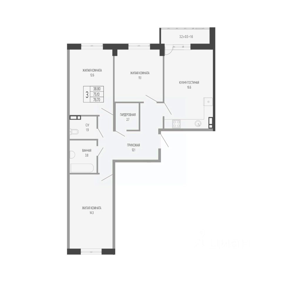 продам 3-к квартира16 092 500 ₽