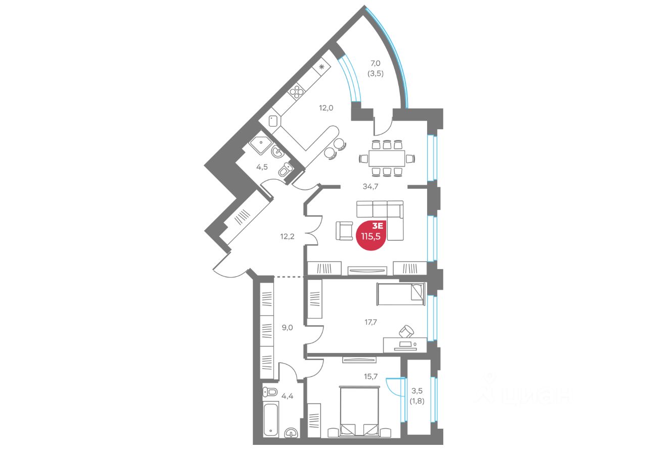 Общая площадь115,5 м2