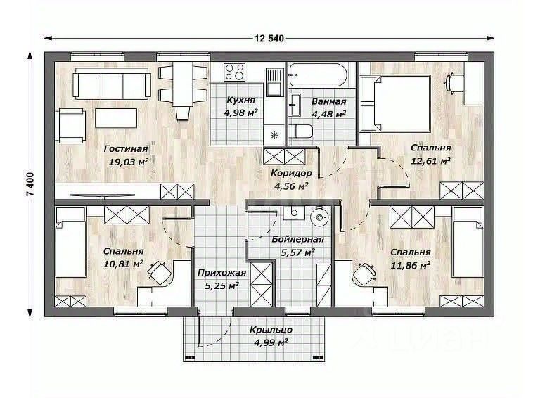 Прекрасный компактный дом с удобной планировкой. Совмещенная кухня-гостиная с выходом на будущую террасу, 3 спальни, ванная и котельная - все необходимое для комфортной жизни за городом.