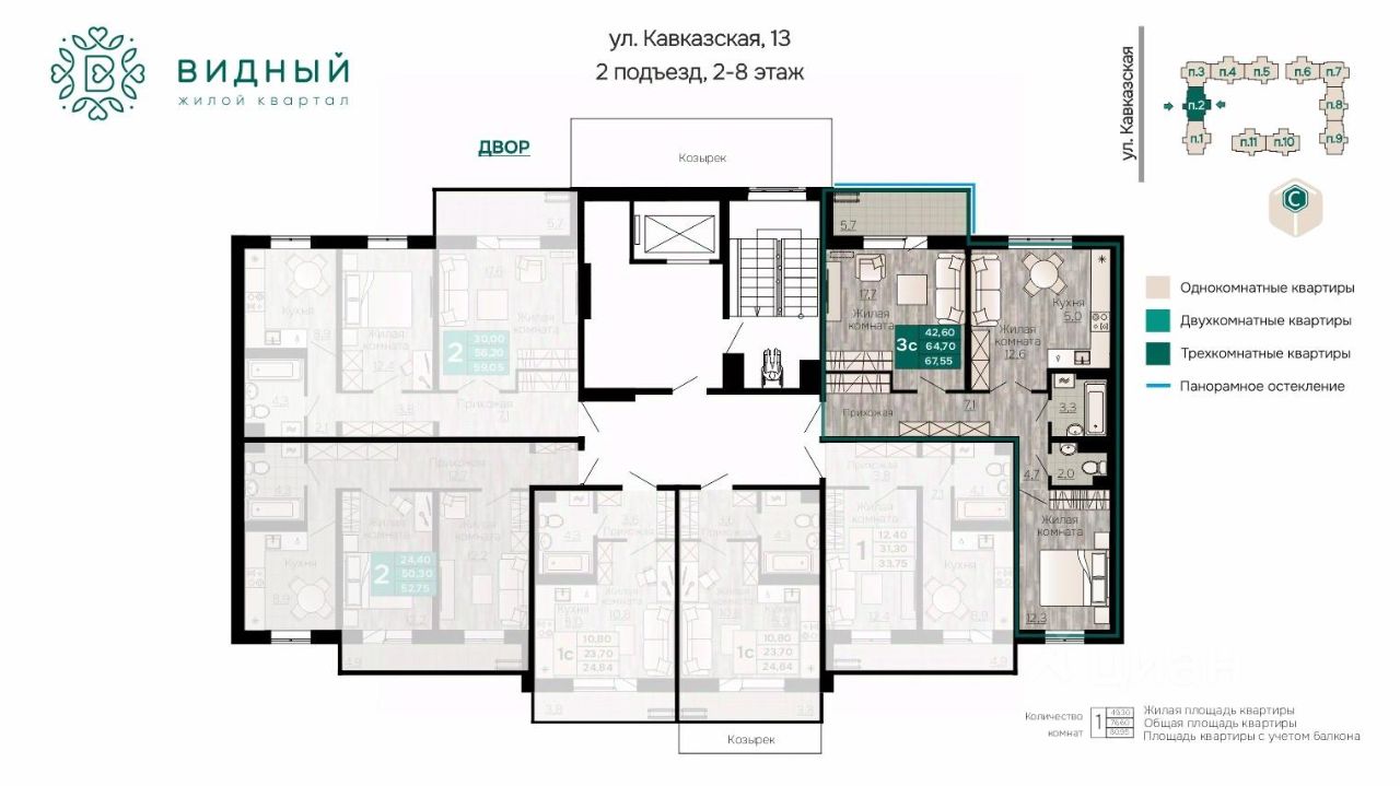 1.''Видный'' сочетает в себе семейную атмосферу, традиции и современную архитектуру с элементами клубного дома. 2.В шаговой доступности находятся школы, детские сады, медицинские учреждения, скверы, крупные торговые сети и многое другое. 3. В 15 минутах от ЖК благоустроенный пляж! 4. Все 3 корпуса ЖК ''Видный'' возводятся по технологии ''97 серия'' панельного домостроения, что обеспечивает энергоэффективность, надежность, долговечность! 5. Малоквартирный дом - по 6 квартир на этаже. Вы будете знать всех соседей в лицо! 6. Пространство вокруг ЖК тщательно благоустроено: большой двор, разнообразные игровые площадки, зоны для фитнеса и отдыха.