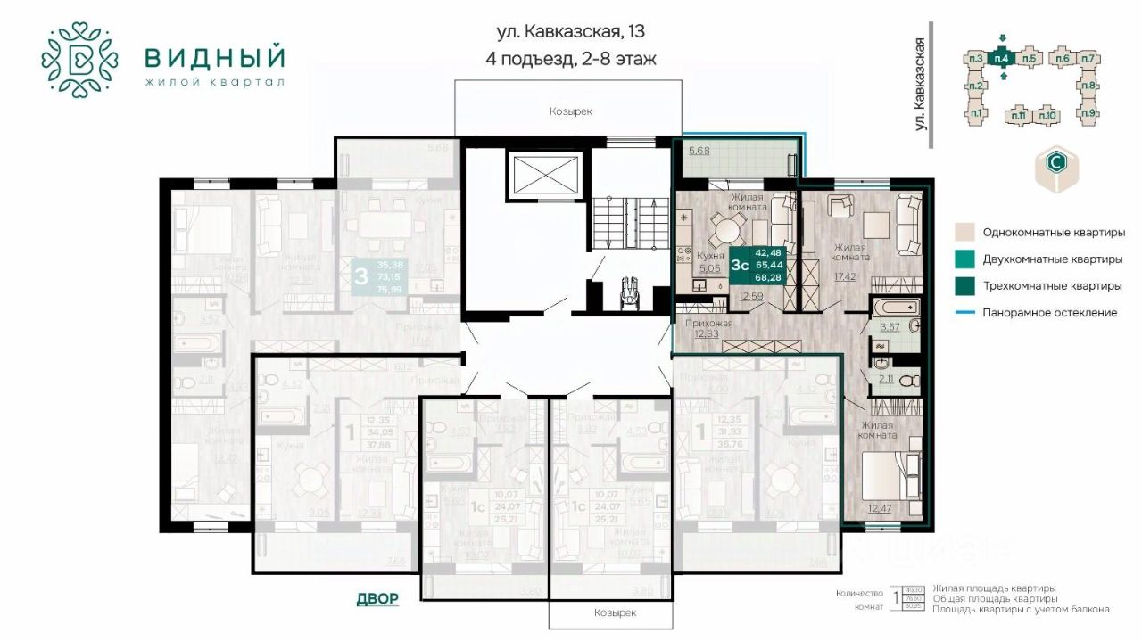 1.''Видный'' сочетает в себе семейную атмосферу, традиции и современную архитектуру с элементами клубного дома. 2.В шаговой доступности находятся школы, детские сады, медицинские учреждения, скверы, крупные торговые сети и многое другое. 3. В 15 минутах от ЖК благоустроенный пляж! 4. Все 3 корпуса ЖК ''Видный'' возводятся по технологии ''97 серия'' панельного домостроения, что обеспечивает энергоэффективность, надежность, долговечность! 5. Малоквартирный дом - по 6 квартир на этаже. Вы будете знать всех соседей в лицо! 6. Пространство вокруг ЖК тщательно благоустроено: большой двор, разнообразные игровые площадки, зоны для фитнеса и отдыха.
